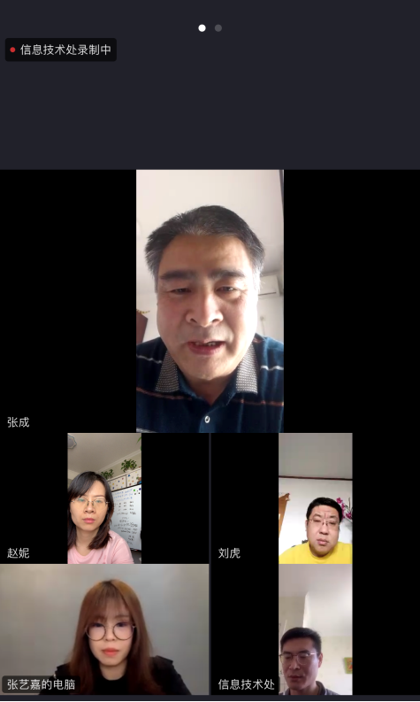 首先,处长张成向大家问好,叮嘱大家在家隔离防疫,应保护好自己和家人,并不忘工作,将我们的信息化做好,尤其是在抗疫特殊时期,我们要充分发挥信息化手段,利用信息技术及学校现有资源,为学校抗击疫情贡献力量。