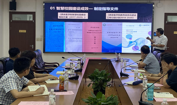 首先,信息技术处处长张成从智慧校园建设成效、教学信息化建设现状、智慧教室建设方案三个方面作了教学信息化工作汇报,重点汇报了信息技术处在智慧教室建设前期调研及方案制定方面所做的一些工作,对建设目标、实现功能、教学支撑等方面都进行了详细说明。
