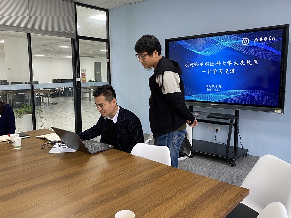 2020年10月16日上午,哈尔滨医科大学大庆校区现代教育中心主任王麟及工作人员莅临我校,就我校智慧校园、基础网络建设、业务系统建设以及信息化管理体制机制等方面的工作进行考察调研。我校信息技术处处长张成及相关人员热情接待了来访同行。