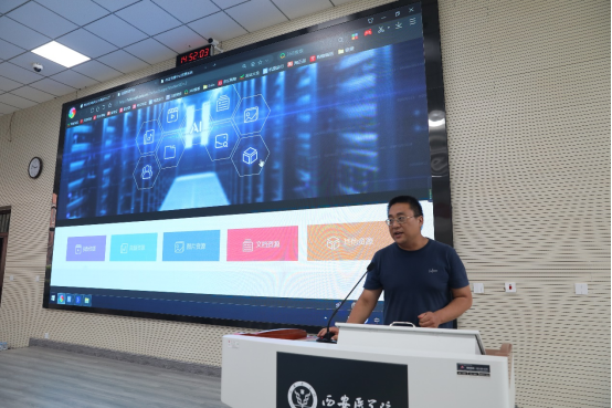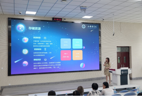 信息技术处处长张成为参会教师介绍了平台建设背景、发展历程及“十四五”规划发展方向。现代教育技术科张艺嘉讲解了平台组织架构、各级管理员负责内容、存储资源类型、日常管理等内容。
