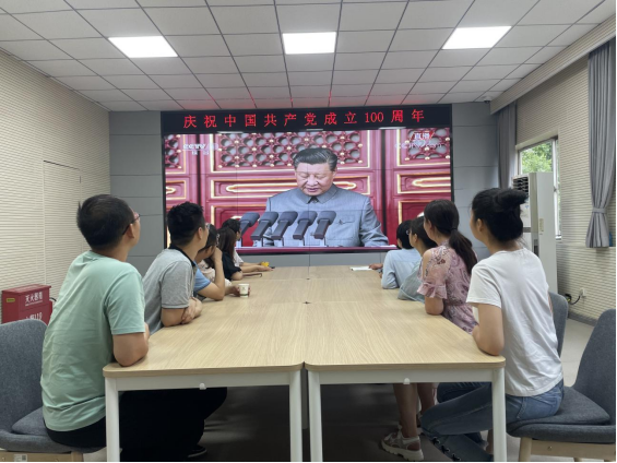 7月1日上午,庆祝中国共产党成立100周年大会在北京天安门广场隆重举行。中共中央总书记、国家主席、中央军委主席习近平发表重要讲话。机关一党总支信发党支部组织全体党员在教学楼二楼教学监控中心集体收看大会盛况,聆听习近平总书记重要讲话。