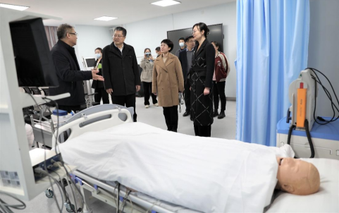 专家组现场考察和切身体验了我校护理示教平台、护理实训室、人体科学馆全景数字化展示系统。(文:吕艳峰 图:代安娜)