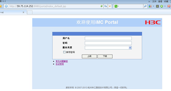 2自动弹出以下页面,输入用户名以及密码并点击上线。(服务类型不选)