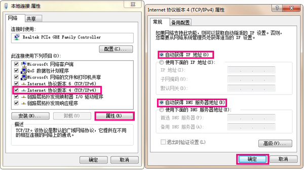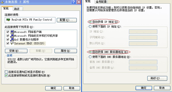 点击自动获得IP地址,以及自动获得DNS服务器地址。按本文二、或三、点击浏览器输入账号方可上网。