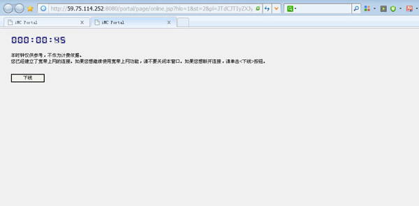 在上网期间请勿关闭此页面(若不慎关闭,半小时内还可以上,之后网络连接自然中断,需进入浏览器再次登陆)